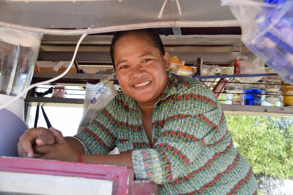 Today Chan runs the bungalows where we stayed for three nights in Otres Beach, outside of Sihanoukville in southwest Cambodia. He is in the second year of a ten-year lease on the land. Although the Gulf of Thailand is just a few blocks away, Chan rarely gets a chance to go there himself since he is always working. “When will you get a break?” we asked. “A break? During the rainy season, maybe. Unless I decide to do some projects like build another bungalow.”