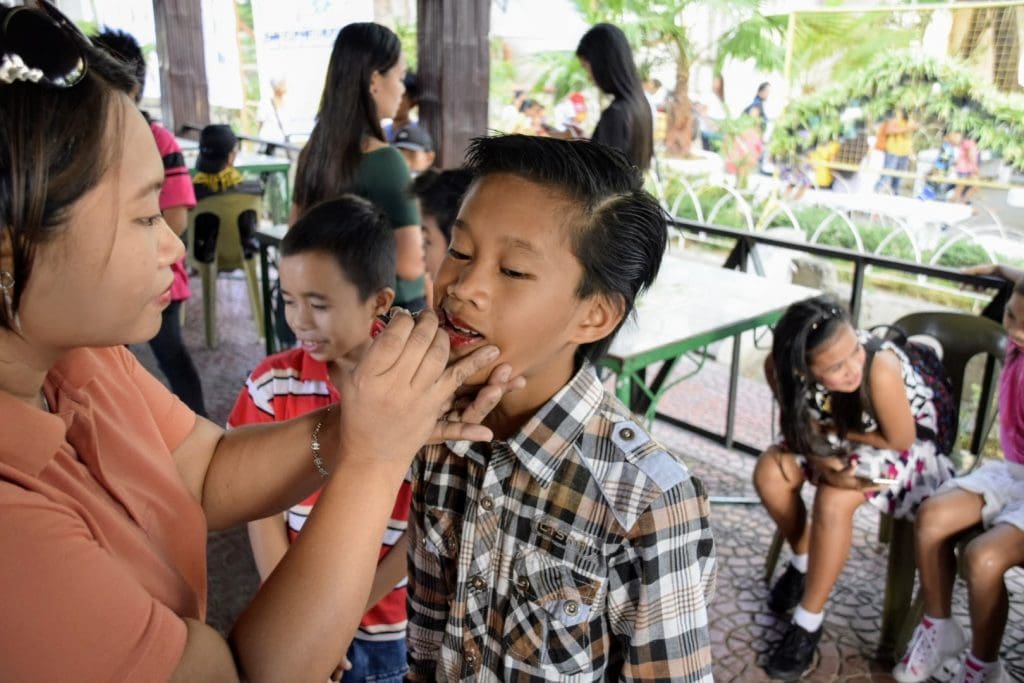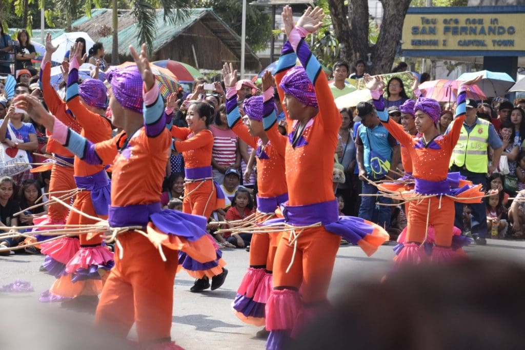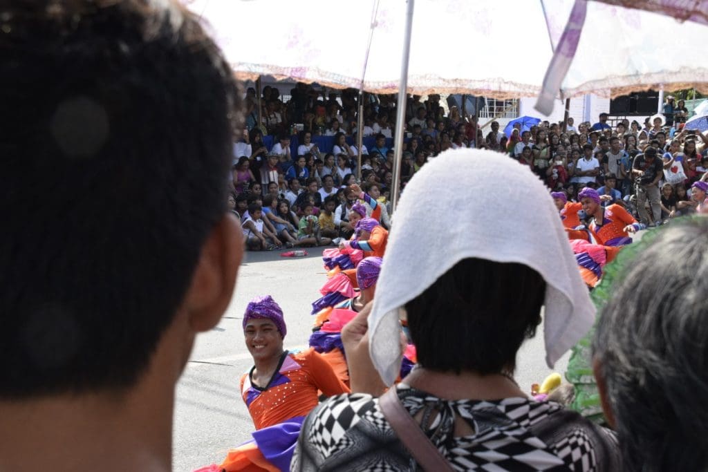 The first stop was the makeup station. Whenever there is street dancing, the performers wear makeup, even the boys. All morning long, I saw boys walking around town with bright red lipstick on. There are usually elaborate costumes as well, but this performance was less formal and was not a competition. In fact, it was billed as a flash mob, to celebrate San Fernando, its schools and its teachers. It was a Tuesday and would also be a day off from school for everyone.