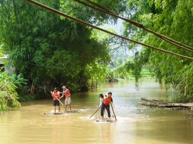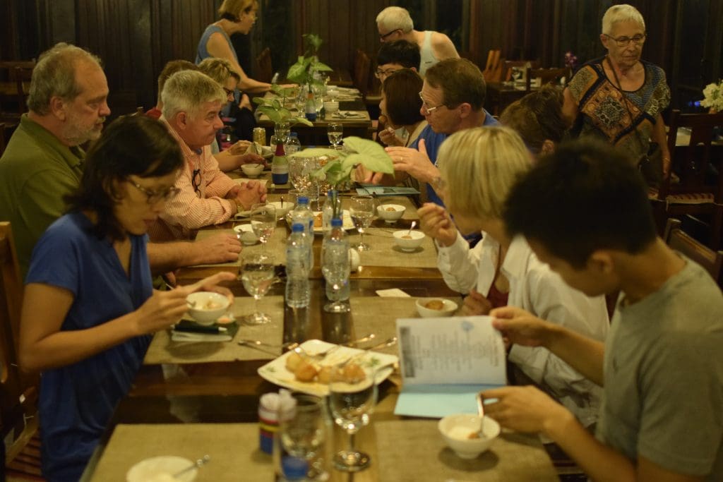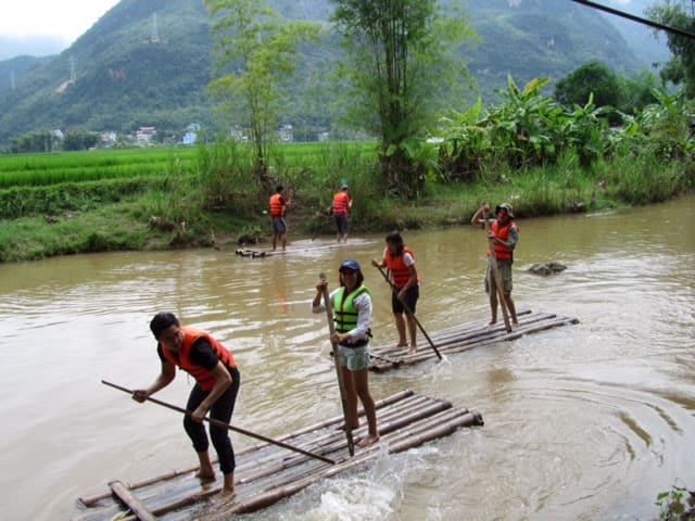 I never got a chance to write again while in Mai Chau. There was too much to experience – the bike rides through the bright green rice paddies, “kayaking” Vietnamese style down a muddy stream, meeting the local Thai indigenous people, enjoying amazing multi-course meals of Vietnamese delicacies, watching traditional dance performances each evening, relaxing in the lodge’s pool with a gorgeous view of rice paddies and mountains, or just breathing in the clean, fresh air. I also got to know the seven other Fulbrighters who recently arrived in Vietnam, some of their spouses, and our wonderful host from the Embassy. Each person’s story is amazing and unique and I look forward to spending more time with them.