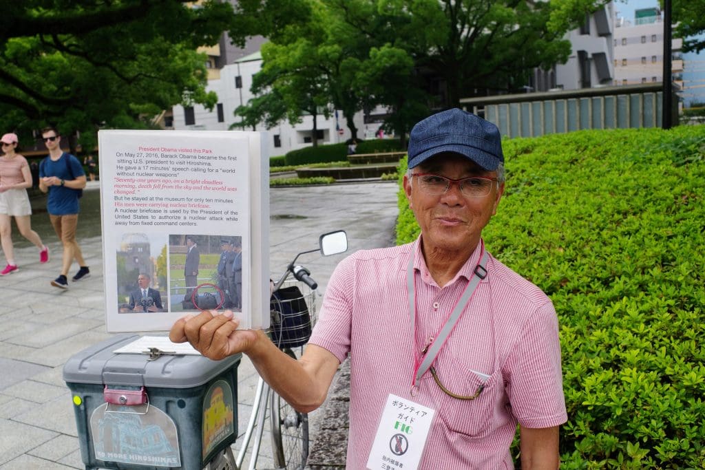 One survivor of the bombing, protesting outside the museum, told the story of President Obama’s visit to Hiroshima, the first visit of any sitting US president. Look closely, though, and you will see a military escort carrying the “nuclear football” containing the nuclear codes, just in case. President Biden’s escort brought the bag into the peace museum just last month during his visit. What have we actually learned since the horrible bombing of Hiroshima?