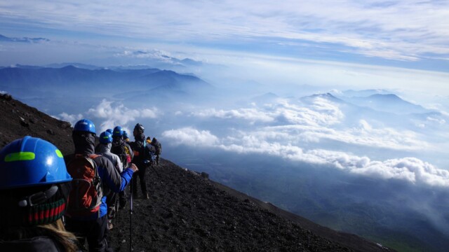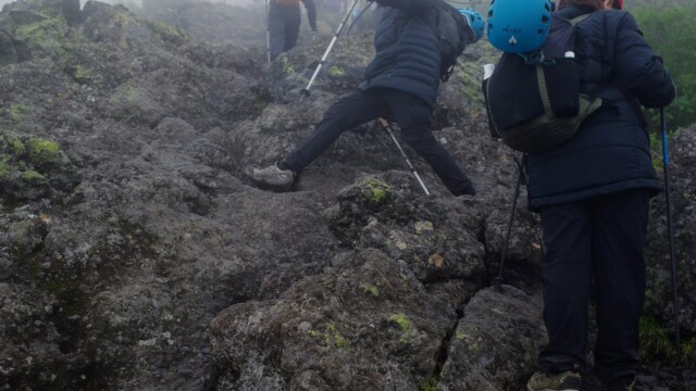 The climb itself was at times easy and beautiful and at other times required the encouragement of 28 fellow climbers and 3 expert guides to take the next step. We called ourselves Team Samurai and worked as a team, even though we had just met. Jin and the Norwegian brothers carried the backpacks of some who just couldn’t carry theirs anymore. We walked slowly and took frequent breaks, taking over six hours to climb to our mountain hut on the first day.