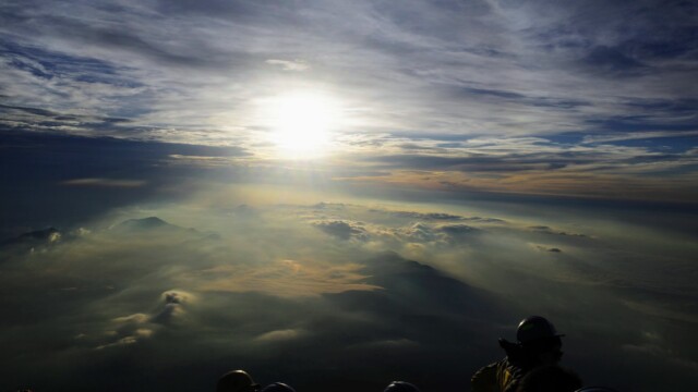 Up at 3:15, breakfast of bread and jam, and time to put on the many layers, helmets, and head lamps before continuing our ascent. Though we were relatively close to the summit, just two stations away, the thin air made every step harder and harder. We moved in slow motion. After the beautiful sunrise we could actually see the summit. It looked so close, but still so far.