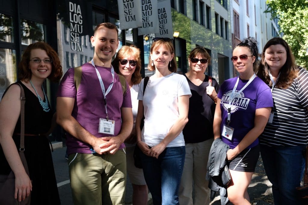 The Dialogue Museum is unlike any other museum I have visited. Most of us were sleep-deprived after our overnight flight from Washington to Amsterdam, and then our connecting flight to Frankfurt. Our group of 15 social studies teachers from across the US split into two smaller groups when we arrived at the museum. All cameras, phones, Fitbits, and anything else that could emit light were left in lockers by the front desk. We were then given canes and instructed to enter a dark room and use the cane to “see” while keeping one hand along the wall. How dark could it be, I wondered.