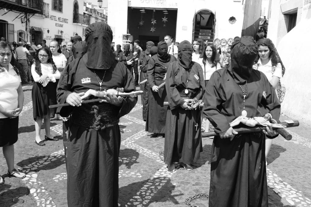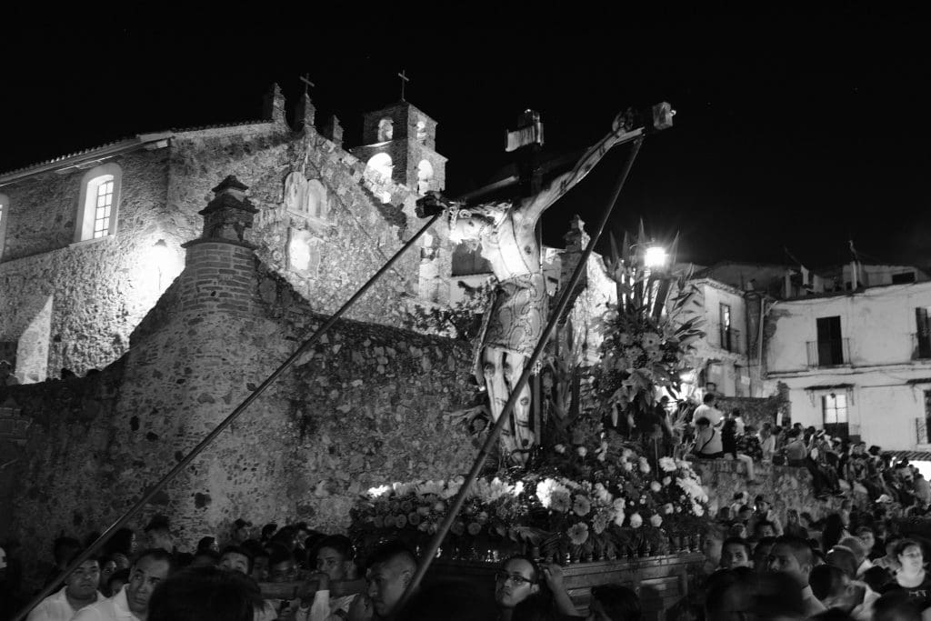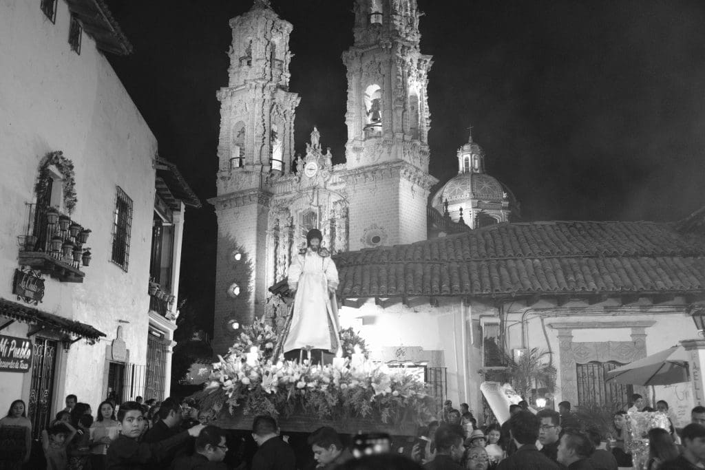 It’s hard to describe in words the processions that happen every night during Semana Santa (Holy Week) in Taxco. Groups of Catholics walk solemnly through the streets honoring saints, reenacting Christ’s last days on earth, and doing penance. Each night there is a different theme with names such as Procession of the Virgens, Procession of the Christs, and Procession of the Holy Trinity.