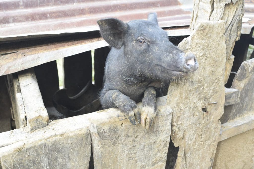 After our visit, we went to feed the pigs who were anxiously awaiting us. As I snapped away, McTery’s grandmother joked that I should take a picture of her cleaning out the pig poop from the pens, so I did.
