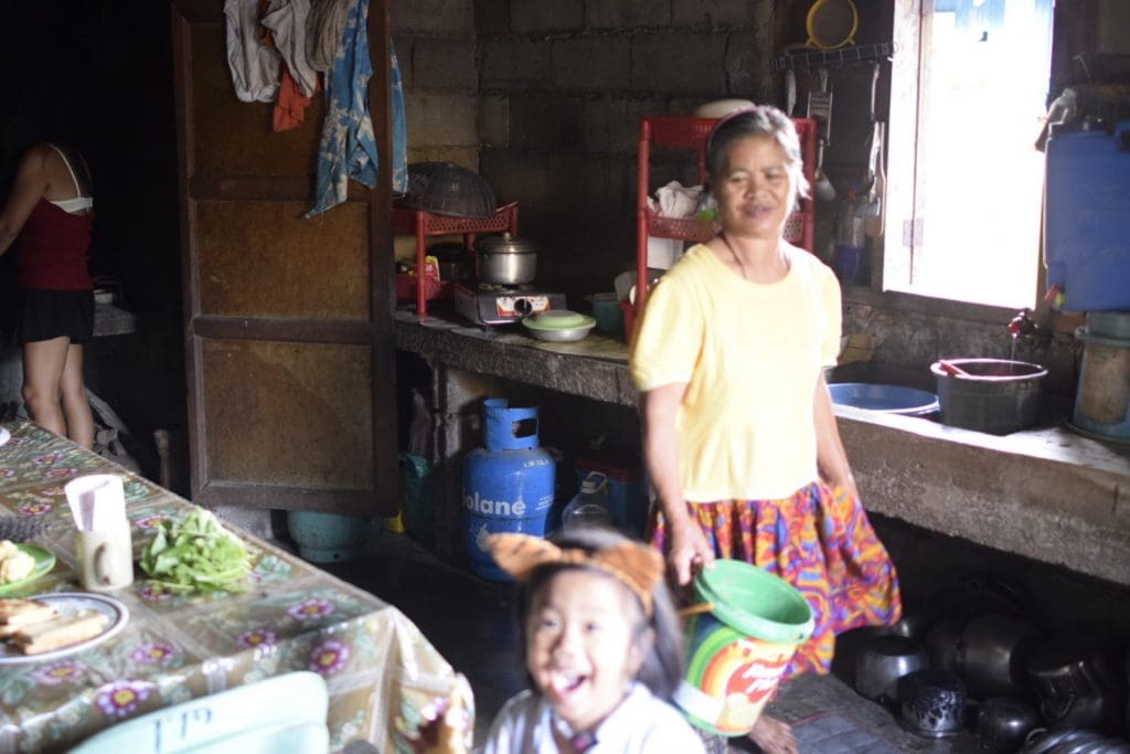 My first morning in Supo began with a walk to feed the pigs. A group of us took our tea and coffee and walked the short distance up the hillside on a trail leading to McTery’s parents’ house. Theresa told me that this was actually the house she grew up in and now her brother and his wife (McTery’s parents) live there with their daughter, Irish. It is a simple bamboo and brick house with a dirt floor and they were afraid I would not be comfortable there, so they arranged for all of us to stay with McTery’s grandparents.