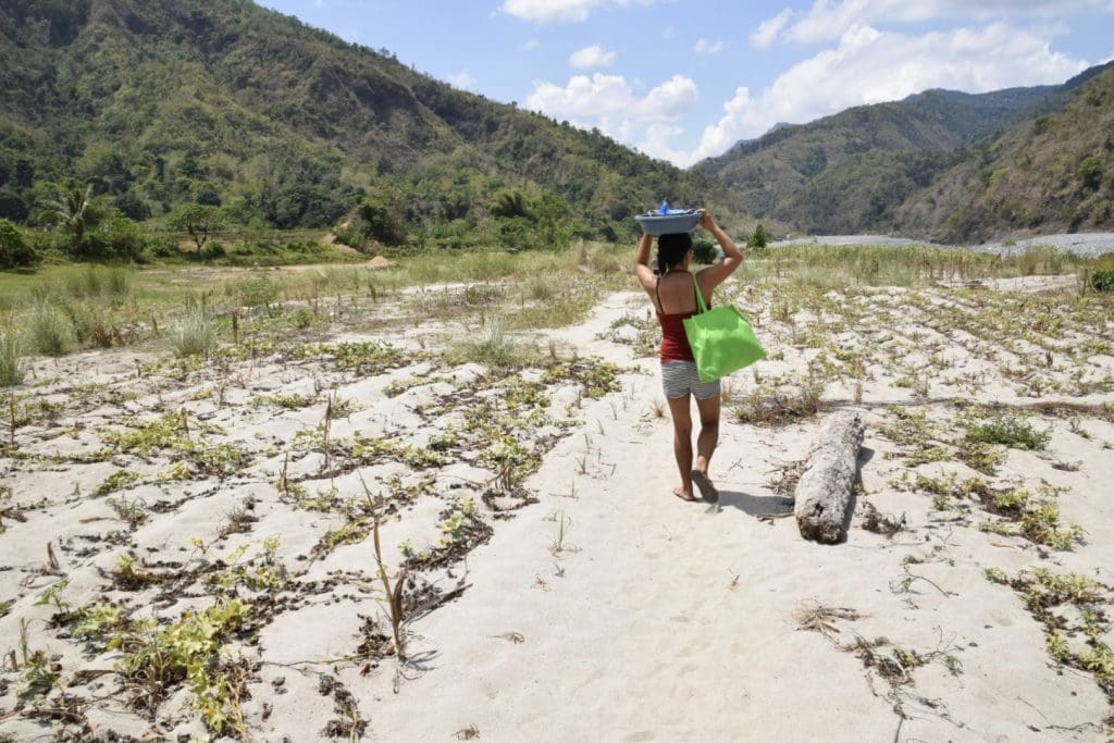 After walking home, Theresa prepared everything we needed for a picnic by the river. Abraham, one of McTery’s cousins, joined us and we began our walk through the flooded rice paddies and dried corn and peanuts planted in the sand.