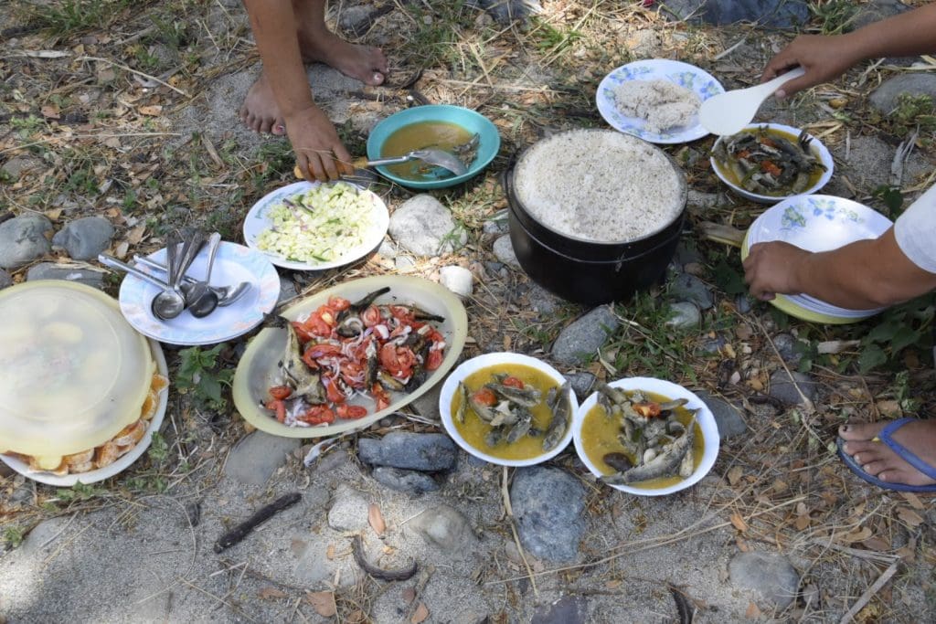 The meal was delicious and the setting was beautiful. Everyone eats meals with their hands here, including rice, but I am always given a fork. The fish was very tasty and I was glad I wasn’t offered any of the eel. The only difficult part for me was not understanding most of what was said. I didn’t really mind since it was nice to just observe and enjoy the experience. I enjoyed a refreshing swim in the river with the kids after lunch while the adults sat by the tree and talked.