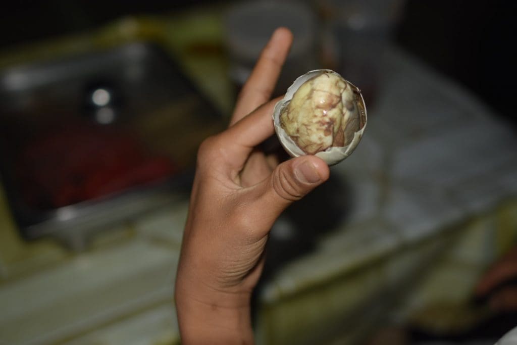 The boiled egg embryo made the rice and snails sound delicious! I can’t believe they put a chicken on the fire while still alive!