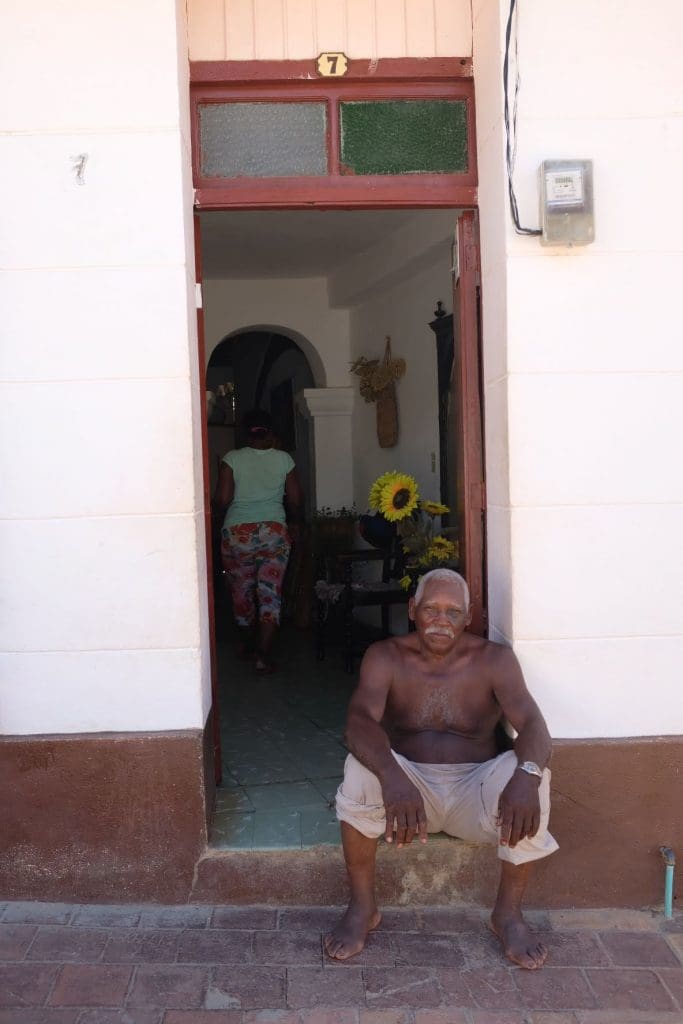 Every doorway has one or more people sitting in it, trying to stay cool in the intense heat. Francisco called out the familiar, “Where are you from?” as I passed his doorway. It was a shady spot, so I stopped for a chat. He talked a lot about how safe Cuba is and wondered why there is so much violence in the US. When I asked how long he had lived in this house, he invited me in. We walked up two stories, and then another spiral staircase to a rooftop patio overlooking the center of Trinidad. It was beautiful. It was not the first time I’d been invited into a Cuban home, but it was the first time it happened while I was alone. This is Cuba.