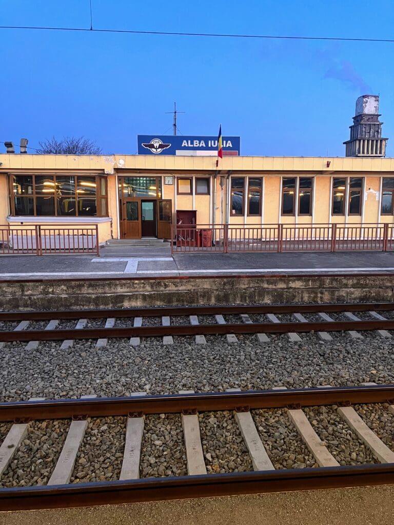 Seconds later I was on the platform, face still wet and soapy, still in my short-sleeved pajama shirt; the dim light of the dawn and still zombie-like feeling from having woken up so abruptly made it all surreal. There was just one other person on the platform, a tattooed burly-looking guy carrying two heavy duffle bags and another strung on his back. It was 33 degrees in Alba Iulia, Romania. My bed from the previous night rolled down the tracks leaving me wondering if I should have rushed off the train after all.